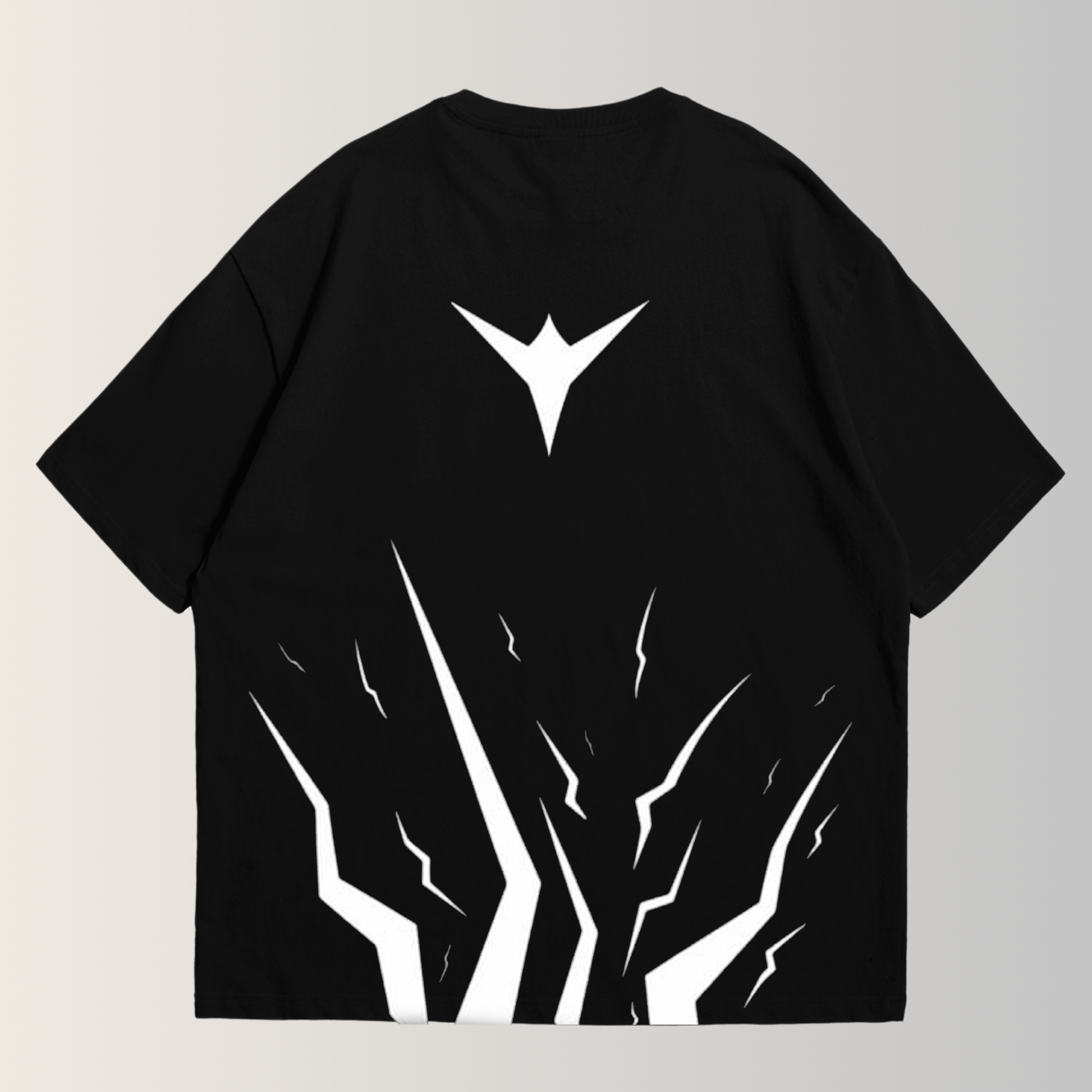 En el frente, los ojos del dragón aparecen de forma directa, firmes y vigilantes. En las mangas y la parte trasera, las grietas de energía recorren la prenda, simbolizando la fuerza liberándose desde el interior.