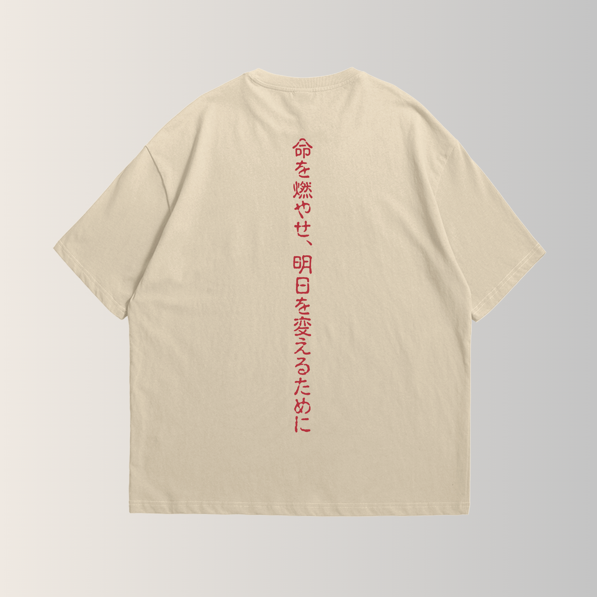 En el frente, luce el emblema de la empuñadura de Rengoku, símbolo de su determinación inquebrantable. En la espalda, la frase en japonés: