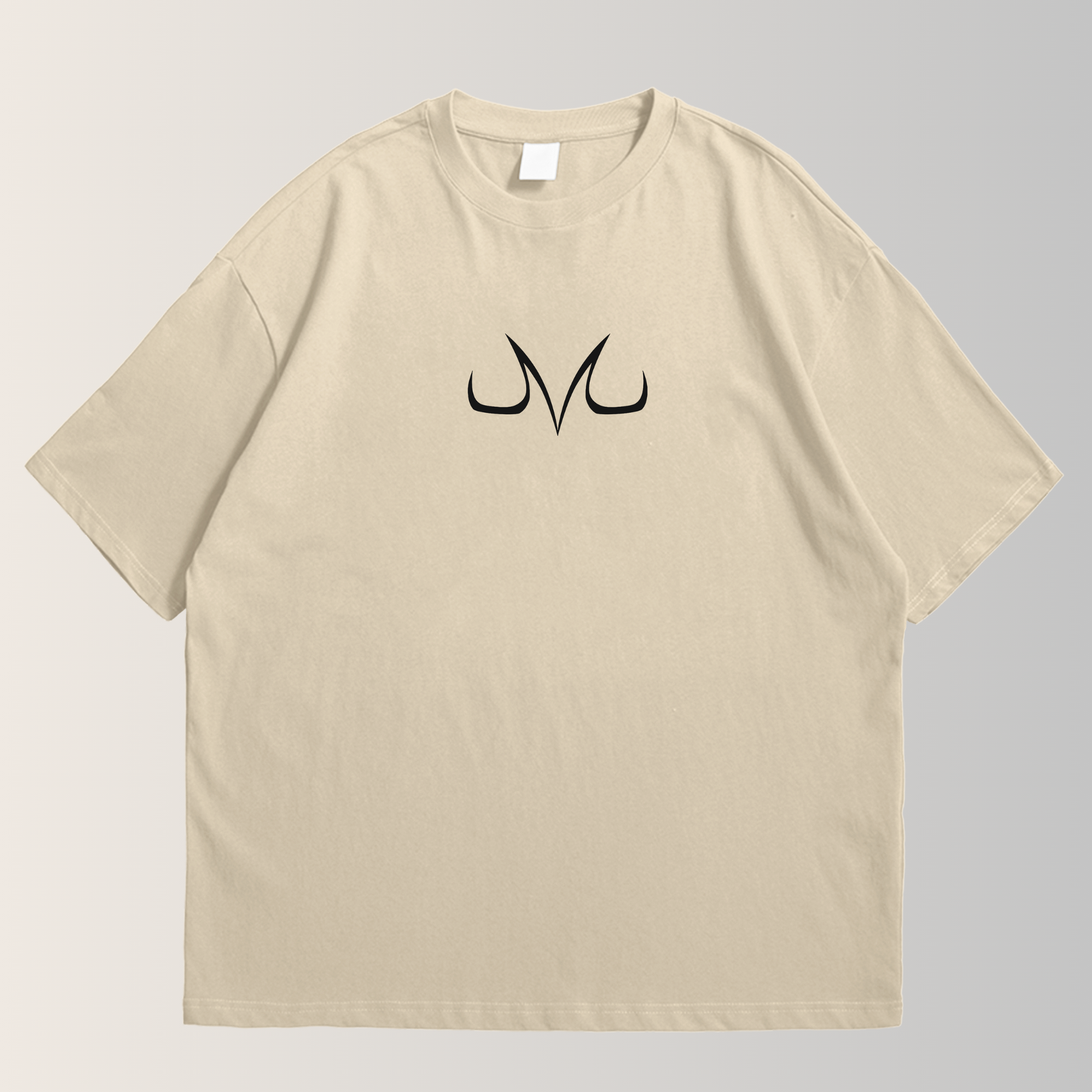 Frontal Sutil: El diseño es minimalista en la parte delantera, con el icónico símbolo Majin (M) impreso en el pecho en tinta negra. Un emblema de poder oculto y absoluto.