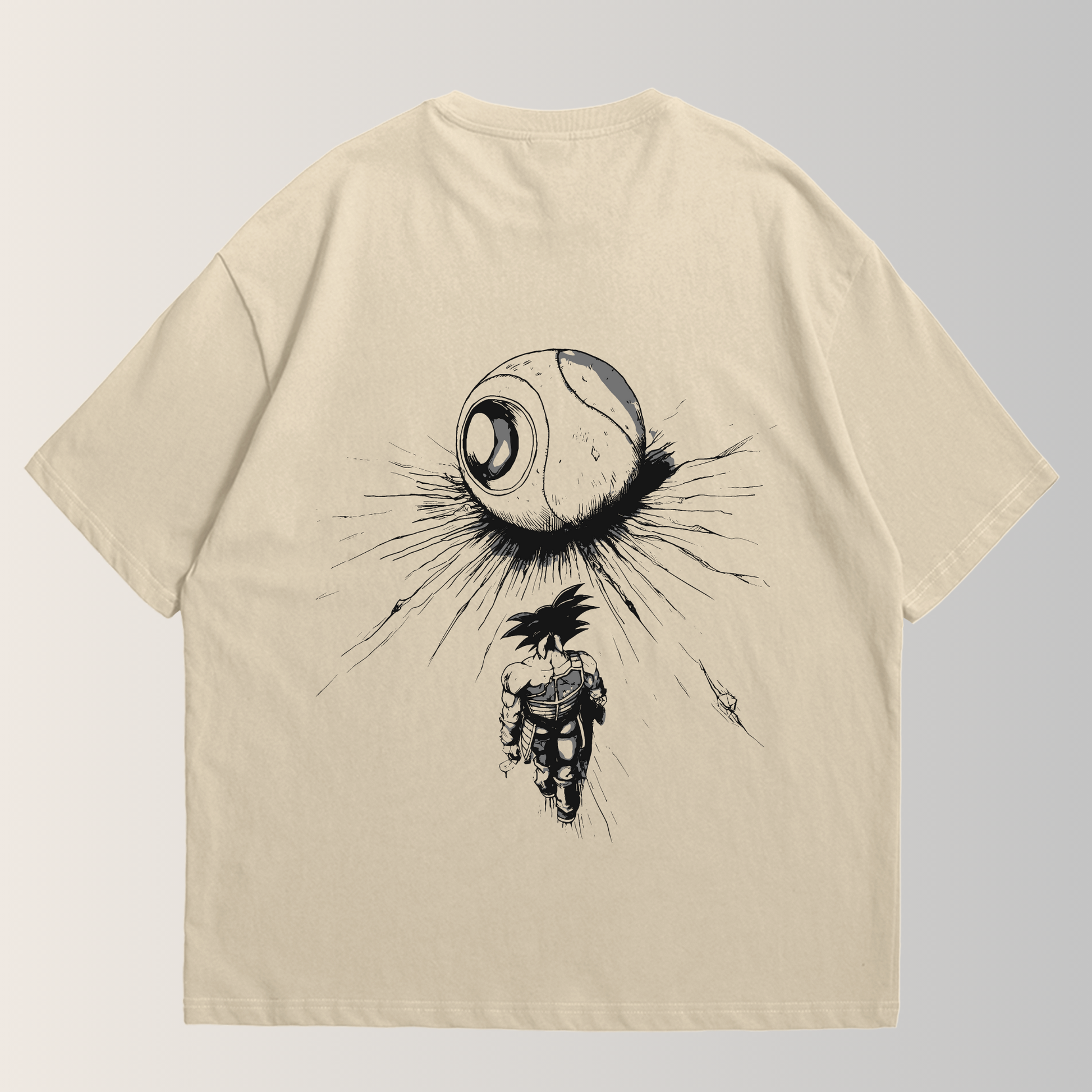La camiseta representa el instinto puro y la valentía del padre de Goku. El diseño evoca la soledad del héroe que se enfrenta a un poder superior, sacrificándolo todo para advertir a su raza. Es una pieza que conecta con el inicio de la leyenda saiyan y la lucha por la supervivencia.