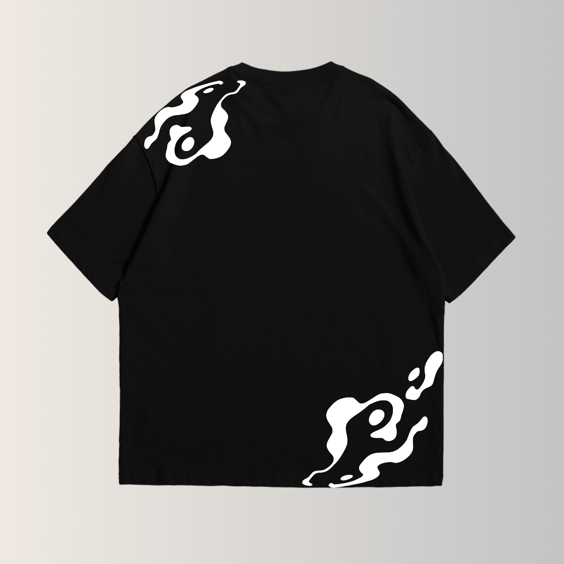 En la parte frontal lleva su nombre de manera sutil, mientras que en la espalda destacan las marcas de su haori, símbolos de su historia y de la dualidad que lo define.